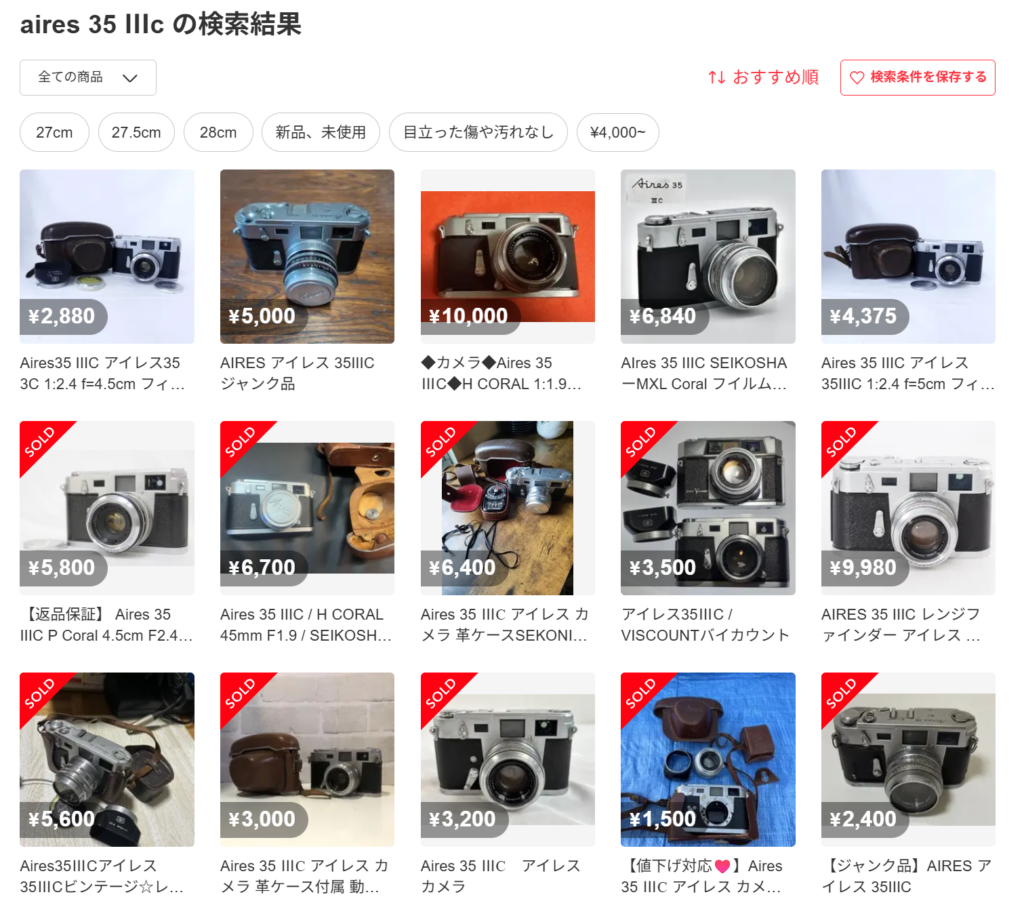 今回物色したアイレス(Aires 35 IIIC)は、一般的な人気は無い機種の為か・・・ジャンク相場は安めなのですが、ライカM3にソックリ!?と言われているAires 35 IIICは、他のアイレスのRF(レンジファインダー)カメラよりも落札相場は少し高めのようです。