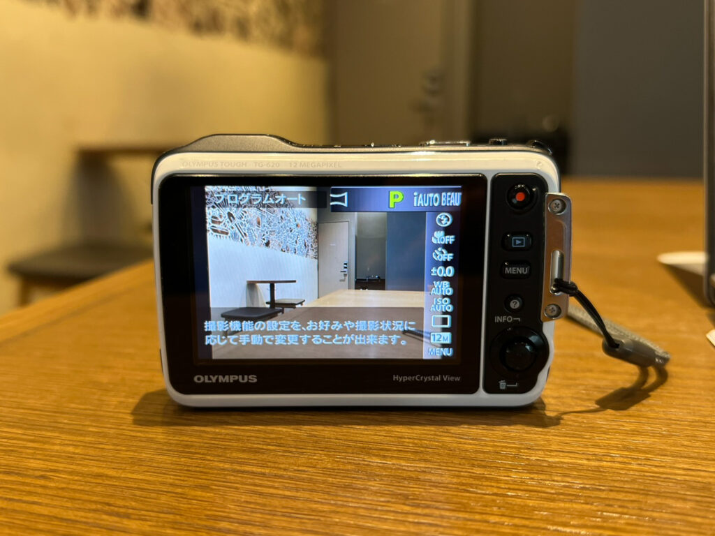 それが、OLYMPUS Tough(タフ)TG-620(2012年2月) です! かつてのOLYMPUSの人気だった”タフネス”コンパクトデジカメの一台です。