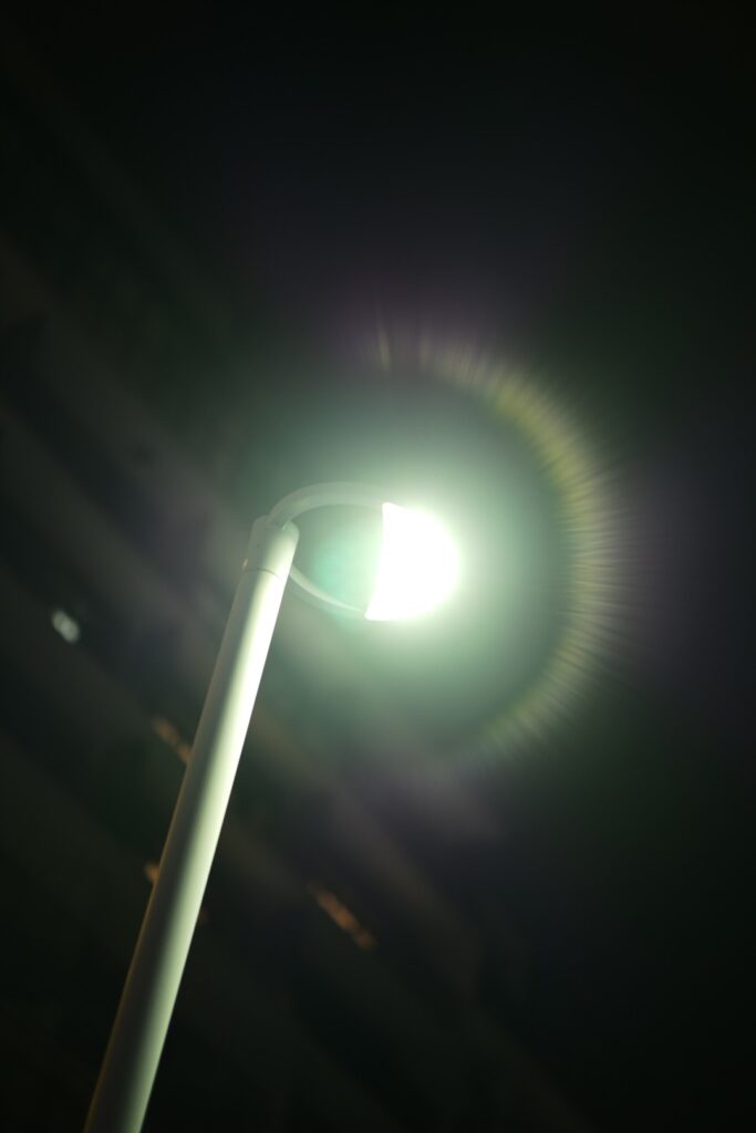光源に向けて撮影すると、フレアー&ゴーストが発生しますが、このレンズのものはちょっと特殊な輝き方をしています(下記の4枚目)。因みに絞りは解放での撮影です。