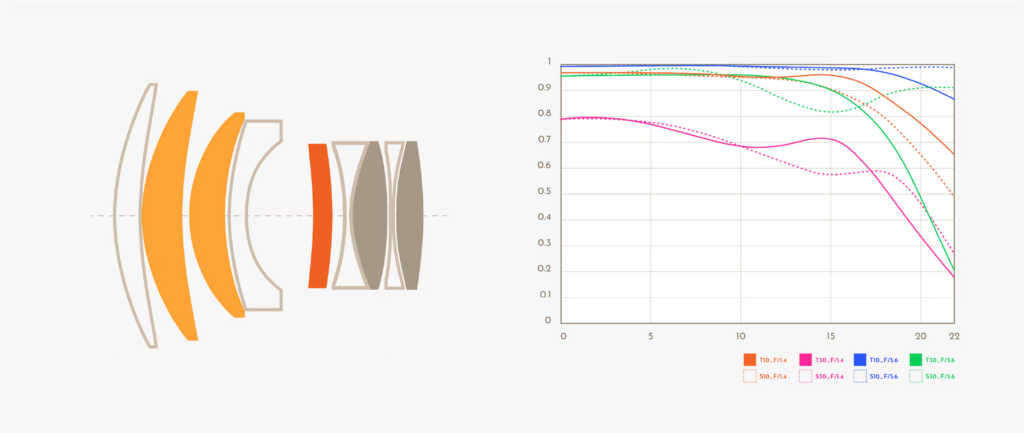 Simera(シメラ)は、ギリシャ語で「今日」を意味する“σήμερα(シーメラ)”に由来し、光学性能を追求するプロフェッショナル向けシリーズ。ラインアップはすべて開放F1.4の大口径単焦点。複数の特殊レンズとフローティング機構を組み合わせ、近接から無限遠まで高い解像力を保ちながら、シネマティックな描写を実現します。